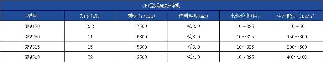 GFW型涡轮粉碎机由动盘及齿圈组成,通过动盘高速旋转,物料颗粒在动盘及静止齿圈之间反复多次受到挤压、碰撞、剪切,从而使颗粒物料得以粉碎。该机采用风冷或水冷,防止物料升温及粘壁。本机主要适用于中低硬度物料的粉碎。